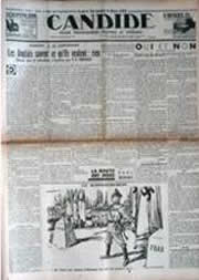 1936L’Âne et le chevalPremière publication dans le journal : Candide n°627, le 19 mars 1936 Contient : Les Anglais savent ce qu'ils veulent - Rien par Pa. Cousteau - M. Herriot - Abel Faivre - Marcel Aymé - etc. |