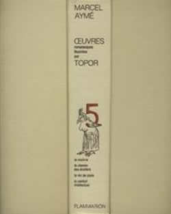 1977Marcel AyméŒuvres romanesques illustrées par Topor Volume 5 Flammarion (avril 1977) 580 pages, 180 x 265 mm ISBN-10 : 2082390047 ISBN-13 : 978-2082390040 Contient : – La Vouivre (7 à 165) 6 illustrations H.T. – Le Chemin des écoliers (167 à 320) 5 illustrations hors texte – Le Vin de Paris (321 à 477) 4 ill. hors texte – Le Confort intellectuel (479 à 574) 5 illustrations hors texte |