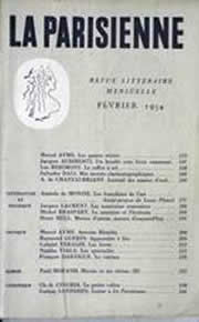1954Les Quatre véritésPublication en préoriginal dans : « La Parisienne n°14 », février 1954, 244 pages pp. 123-146 Contenu : Aymé/Les quatre vérités - Audiberti - Berimont - Dali - Chateaubriant - Monzie - Laurent - Braspart - Hell - Aymé/A. Blondin – Guerin - Veraldi - Viala - Dartigue - Morand - Cingria - Savoisin. |